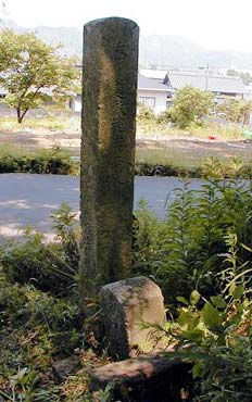 その19 願主真念の標石(しるし石)の場合、それらの施主として四国内の人たちに限らず江戸や京大坂の人たちも少なからず名を連ねていたのだが、徳右衛門の場合はほとんどが地元の人たち(四国在)によるものであった。そうした中で四国外の施主は次のようである。 ●備中窪津郡倉輔村 朝屋傳兵衛 四十三番明石寺境内「これより菅生山迄二拾壱里」 ●摂州兵庫東出町 遍にや小平 七十八番郷照寺口「是より天の社 一里半」 確認できたのはわずかにこの二基である。この人たちと徳右衛門の関係は不明である。あるいは遍路旅の時に知り合ってのことなのか、何かほかの理由があって施主として名を残したのかがわからない。そしてもう一基特殊な事情によるものと思われる石がある。高知県大方町入野浜の宮(加茂神社西北)に立っている石である。 〇「こ連より足摺山江十一里」 願人豫州朝倉上村徳右衛門 これの施主が「兵庫野村屋喜兵衛」と地元入野浦の「七兵衛」である。裏面には「為道教施主菩提」とある。これは現在も傍らに折損の標石、当初の徳右衛門のものが置いて有り、なんらかで折れたものの代わりに再建したものである。つまり徳右衛門の意志を継いで新しく建てたのである。地上部一七〇〇センチメートルもあり他の徳右衛門のものより背が高い。地元七兵衛の肝いりで兵庫の野村屋喜兵衛が金を出したものであろうが、これまた野村屋の素性が分からない。裏面刻字にある「道教え施主の菩提を」祈っているのが善意の言葉として輝いている。他の多くの標石も善意の現れであったが、「道教施主菩提」の刻字は徳右衛門たちの善行を改めて称賛したものとして感心させられるものである。