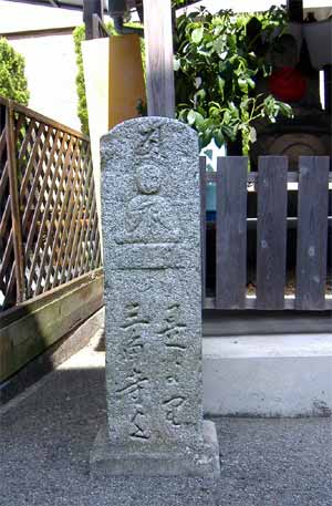 | その31 どうしても推理的な方向=一般に知られていない知見や見解に傾いてゆくのは自身の悪癖として止むを得ないことではあるが、考察の対象としての道標石が黙して立っていたり隠れていたりしているのが現状。これは当然に「存在」なのであるが、一番小生の居住地に身近なところでは、「是より三角寺迄六里」石。上半分は国領川左岸旧道端地蔵祀の前に立っている。 お地蔵さんの番人的趣である。しかしこの立石=(願主徳右衛門の)大師像があれば往時の遍路世界を垣間見せて呉れるのである。 施主は地元新居浜(新居郡)萩生岸の下の飯尾氏。名前は「逸達」のように読めるのだが…。いずれ庄屋の一族である。萩生村はへんろ街道が村内を通っており、村役人の古文書によって多くの辺路たちの動向がうかがわれる所である。徳右衛門在世当時の記録を一つ紹介しておこう。